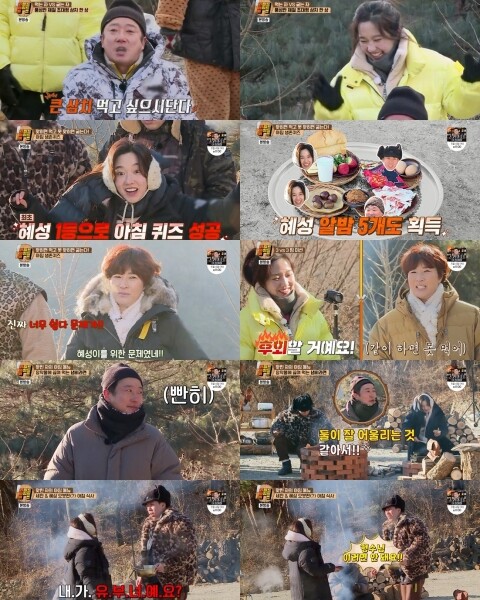전날 아침 패자부활전에서 얻은 고구마밖에 먹지 못해 다리까지 풀리며 짠내를 유발했던 이혜성은 다음날 아침 퀴즈에서 1등은 물론, 2관왕에 올라 두 가지 메인 식재료를 차지했다.