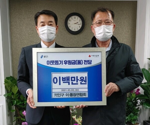 최희운 처인구 이통장연합회장은 “큰 금액은 아니지만 어려운 이웃들에게 작은 도움이 되길 바란다”며 “이통장들이 지역 사회에 공헌할 수 있도록 다방면으로 노력해 나갈 것”이라고 말했다.