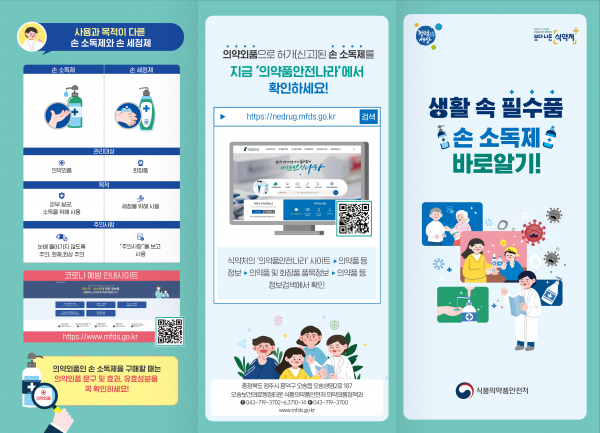 손소독제는 감염병 예방을 위해 손과 피부의 살균·소독을 목적으로 사용하는 제품으로 구매 시 식약처에서 허가받은 제품인지 확인하고 제품 겉면의 ‘의약외품’ 표시와 효능을 확인하는 것이 바람직한다.