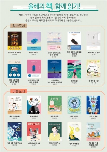 시 도서관 관계자는 “시민분들이 직접 선정한 책을 함께 읽는 과정을 통해 책 읽는 문화가 조성되길 바란다”며 “다 함께 책 읽는 용인을 만들 수 있도록 많은 관심을 기울여달라”고 말했다.