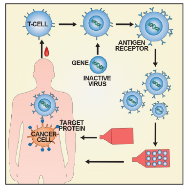 ‘키메라 항원 수용체 T세포’는 면역세포의 수용체 부위와 암세포 표면의 특징적인 항원 인식 부위를 융합한 유전자를 환자의 T세포에 도입한 것으로 암세포의 표면 항원을 특이적으로 인지해 공격하는 기능을 갖는 세포이다.