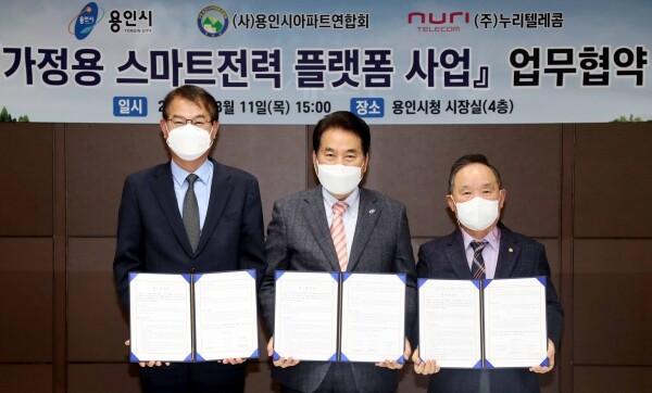 이날 협약식엔 백군기 용인시장, 용인시 아파트연합회 김광수 회장, 누리텔레콤 김영덕 대표이사 등 관계자 13명이 참석했다.