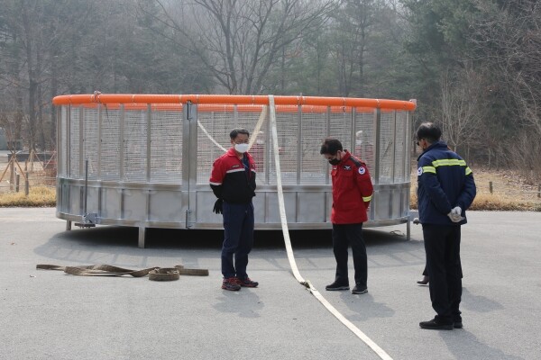 이날 인천대공원 산불진화헬기 담수용 저수지 운반 현장에는 고기연 산림항공본부장과 최도수 인천시청 주택녹지국장, 서치선 인천대공원사업소장을 비롯한 여러 관계자가 참석해 헬기 운반과정을 지켜보면서 유관기관 업무협력의 중요성과 산불방지에 만전을 기해줄 것을 당부했다.