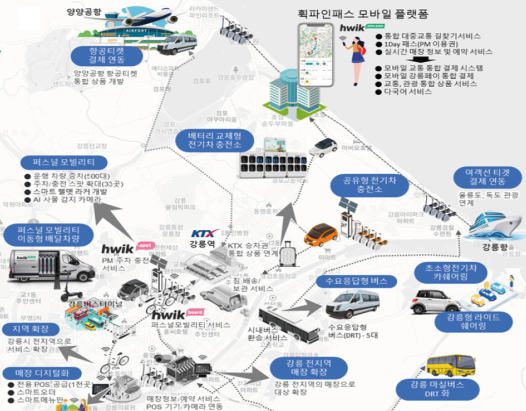 본사업에서는 강릉시 전역으로 모빌리티 스테이션을 확장하고 KTX 외에도 양양공항과 강릉항 페리와도 연결을 추진한다.