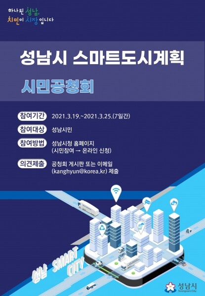 시가 수립한 스마트도시계획에 담긴 주요 사업과 기대효과 등을 알리고 시민 의견을 수렴해 정책에 반영하려는 절차다.