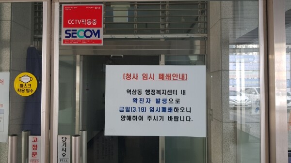 아울러 임시 폐쇄했던 역삼동 행정복지센터는 3월31일 마감되는 경기도 재난기본소득 접수를 위해 20일 운영을 재개해 시·구청에서 파견한 직원 2명과 시민안전담당관 직원 2명이 업무를 이어간다.
