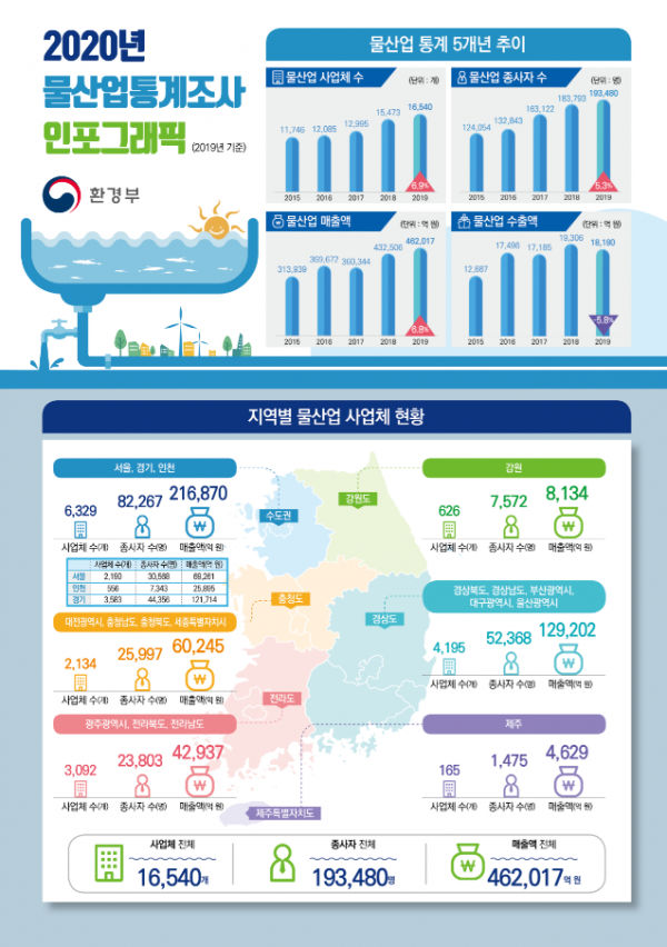 물산업 분야 종사자 수는 전년 대비 9,687명이 증가한 총 19만 3,480명으로 조사됐다.
