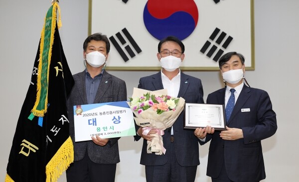 기후변화에 대응하기 위한 채소·특수작물 환경 제어 기술 보급과 일본 품종인 고시히카리·추청 등을 대신해 경기도 고유의 벼 품종인 참드림 생산단지 287.5㏊를 조성하고 시 농산물 가공제품 공동브랜드인 ‘용인의 소반’을 구축한 것도 높은 평가를 받았다.