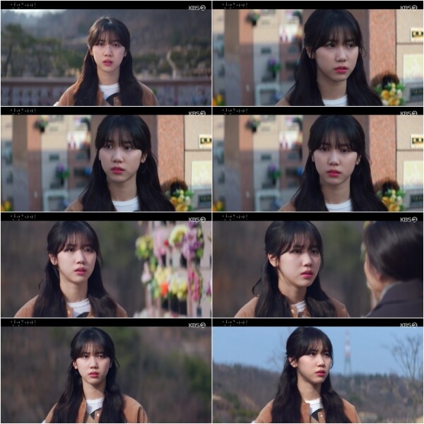 이레는 미래로 온 뒤, 가족들을 차례로 만났지만 아버지만큼은 일이 바빠서 만나지 못하는 것으로만 알았던 상황. 추모공원에서 마주한 아버지의 사망소식은 더욱 큰 충격으로 다가와 폭풍오열 일보직전의 상황을 열연했다.