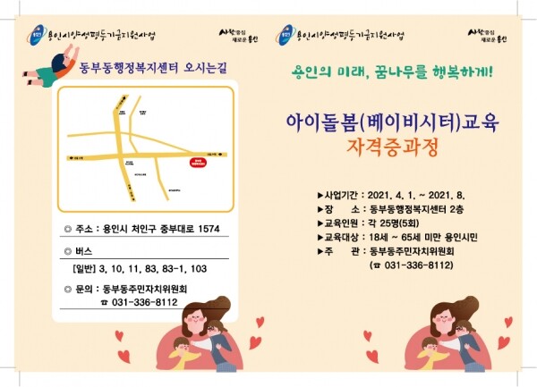 동 관계자는 “코로나19 등으로 아이돌봄 수요가 크게 늘어난 만큼 이와 관련된 일자리도 많이 생겨날 것”이라며 “평소 베이비시터 자격증 취득에 관심 있는 시민들의 많은 참여를 기대한다”고 말했다.
