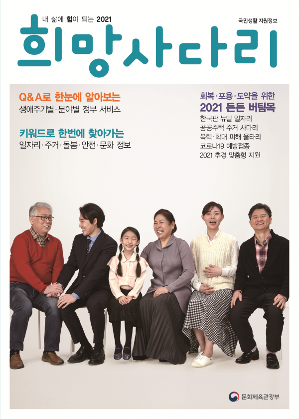 문체부 정책 담당자는 “정부 부처와 공공기관의 생활 지원 정책을 엄선해 담은 ‘희망사다리 2021’은 다소 어려운 행정용어로 된 정책 이름 대신 국민이 쉽게 이해할 수 있는 질의응답 방식과 단어 찾기 방식을 도입해 정책을 소개했다”며 “정부 지원이 꼭 필요한 상황임에도 정책을 몰라 지원을 받지 못하는 안타까운 상황이 발생하지 않도록 이 책이 국민들의 생활에 도움이 되기를 기대한다”고 밝혔다.