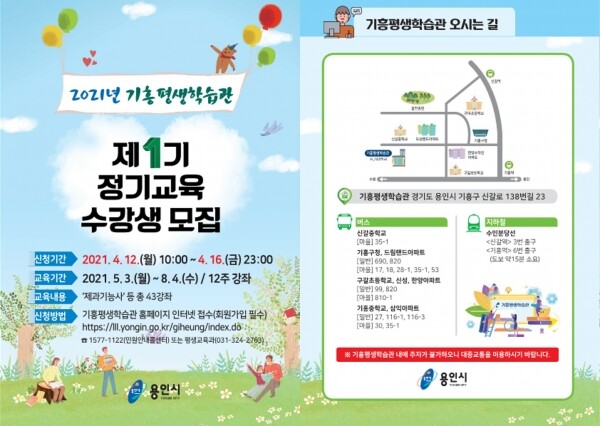 용인시민이라면 누구나 참여할 수 있고 신청은 기흥평생학습관 홈페이지에서 하면 된다.