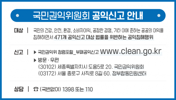 또한, 법원에 대한 의견제출권이 신설돼, 올해 7월 21일부터는 국민권익위가 필요하다고 인정하거나 법원이 요청하는 경우 공익신고와 관련된 민·형사소송 및 행정소송에 대해 국민권익위가 의견을 제출할 수 있게 된다.