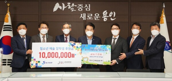 경수고속도로는 16일 용인시청 시장실을 방문해 용인시 인재육성재단과 용인문화재단에 각각 1천만원씩 총 2천만원을 장학금 명목으로 전달했다.