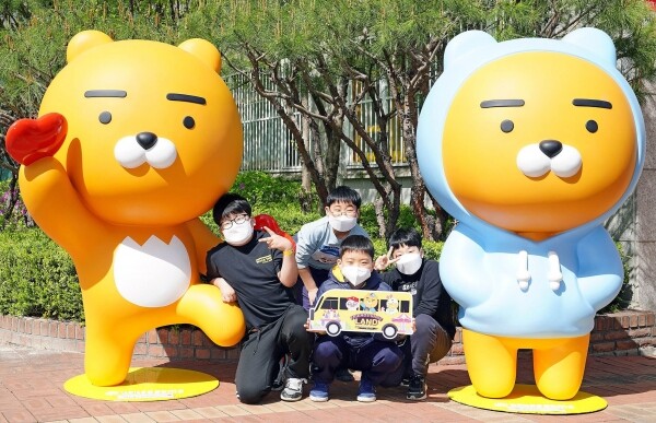카카오프렌즈 캐릭터들로 래핑 된 버스가 지역 아동이 있는 곳을 찾아가 4차원 가상현실 게임 문화 체험의 기회를 제공한다.