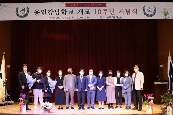 이날 김용한 교장은 “개교 10주년을 맞이해 특수교육을 통해 우리 용인 지역 장애학생들의 꿈과 재능을 발견하고 이를 적극 지원하겠다”며 “학교 구성원 모두가 ‘하나님 사랑, 사람 사랑’의 정신을 함께 실천하며 ‘사랑을 실천하는 학교’, ‘연구하는 학교’, ‘더욱 행복한 학교’ 용인강남학교가 되도록 최선을 다하겠다”고 말했다.