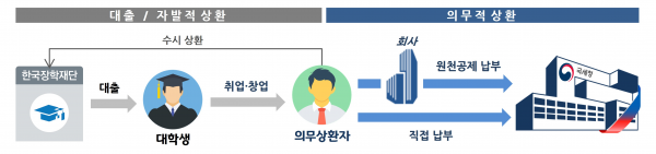 직장에 다니는 경우 회사가 급여 지급 시 의무상환액의 1/12씩을 매월 원천공제하는 방식으로 납부할 수 있다.