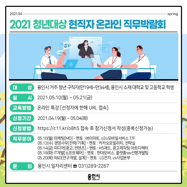 참가를 원하는 사람은 다음 달 4일까지 시 홈페이지와 용인시 일자리센터 홈페이지에 접속해 사전신청 인터넷주소을 클릭하면 된다.