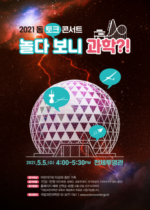 국립과천과학관 안인선 연구원은 “이번 돔 토크콘서트를 통해 어린이들이 좋아하는 놀이 속에서 과학을 재발견하고 생각보다 친숙한 과학을 만날 수 있기를 바란다”고 말했다.