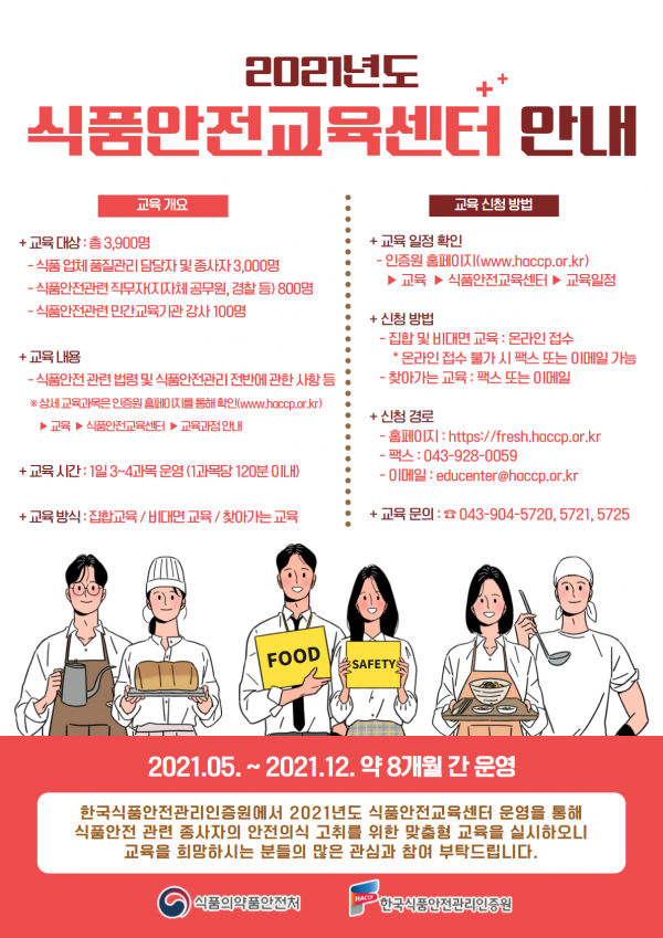신청은 5월 1일부터 한국식품안전관리인증원 홈페이지를 통해 직접 신청할 수 있다.