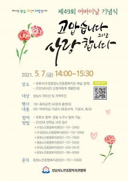 성남시노인종합복지관협회가 주관하는 이날 행사는 수정중앙노인종합복지관 유튜브로 생방송 해 시민 누구나 시청할 수 있다.