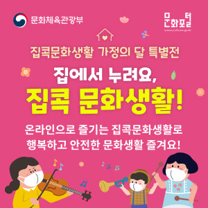 이번 `가정의 달 특집’을 통해 문체부는 여러 부처·기관과 협력, 다양한 비대면 콘텐츠를 무료로 제공하고 우리 국민들이 집에서 코로나 19로부터 안전하게 보낼 수 있도록 지원할 계획이라고 전했다.