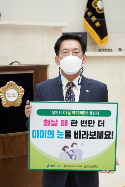 오는 31일까지 진행되는 이번 챌린지는 5월 가정의 달을 맞아 아동학대에 대한 사회적 인식 개선과 예방을 위해 용인시에서 마련하게 됐으며 김 의장은 지난 3일 백군기 시장이 다음 참가자로 지명하면서 참여하게 됐다.