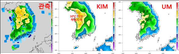 또한, 장마기간 중의 평균적인 강수 예측정확도도 영국통합모델과 유사했다.