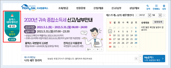 종소세 신고안내문을 받은 납세자는 홈택스에 로그인하면 초기화면 좌측에 나타나는 내비게이션 서비스를 이용해 개별 메뉴를 찾을 필요 없이 신고·납부 전 과정을 마칠 수 있다.