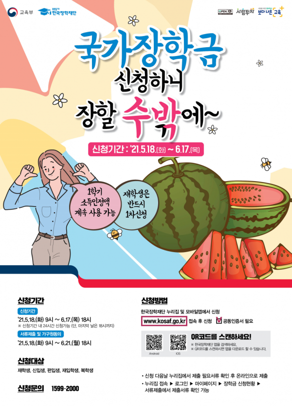 신청 대상은 재학생, 신입생, 편입생, 재입학생, 복학생으로 재단 누리집과 모바일 응용프로그램을 활용해 24시간 신청 가능하며 신청 마감일인 6월 17일은 오후 6시까지만 신청할 수 있다.
