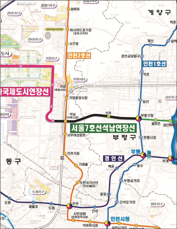 서울 도시철도 7호선 석남연장선은 기존 종착역인 부평구청역에서부터 산곡역을 거쳐 석남역까지 이르는 총 연장 4.165km의 노선으로 2014년 9월 착공해 6년 9개월 만에 개통된다.