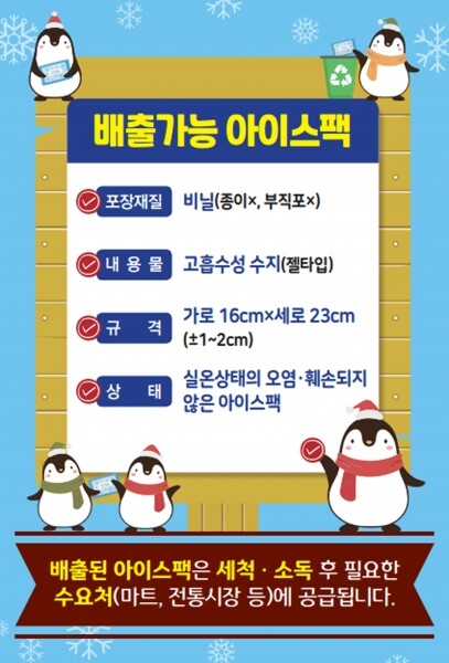 수거함에는 비닐 포장된 16㎝×23㎝ 크기의 젤 타입 아이스팩만 넣어야 한다.