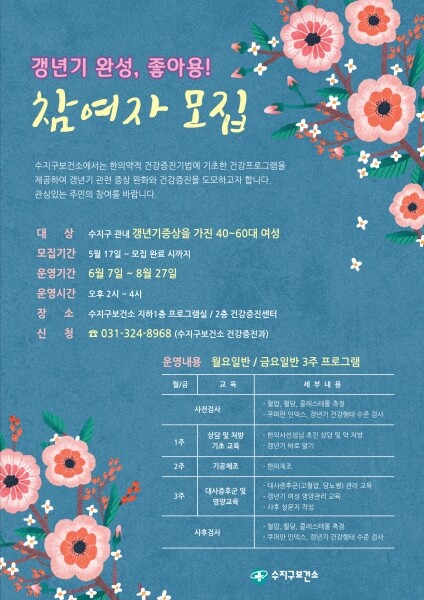 아울러 프로그램 전과 후에 갱년기 자가 진단 검사와 혈압, 혈당, 콜레스테롤 측정도 진행해 개선 정도를 평가할 예정이다.