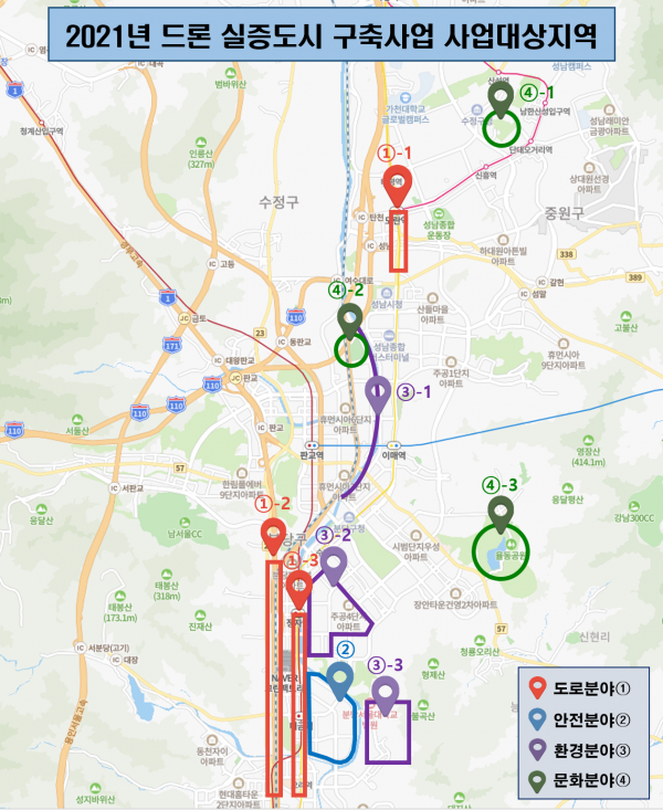 이를 통해 시는 원도심과 분당 신도시, 판교 첨단도시의 도시문제를 해결하고 신성장동력을 창출해 지역 기업의 우수 드론 기술과 모델 상용화를 적극 지원한다는 방침이다.