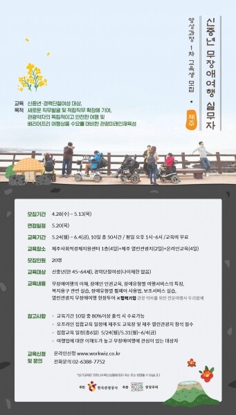 오는 10월까지 총 100명을 대상으로 4차에 걸쳐 진행되는 이번 교육은 무장애여행 실무자, 트레킹 가이드, 마을호텔 관리자, 여행플랫폼 호스트 등 다양한 관광분야 직무양성 및 취업까지 연계할 수 있도록 설계됐다.