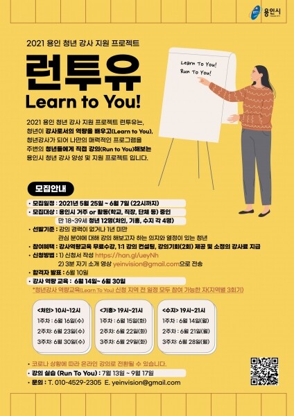 시 관계자는 “의지와 열정이 넘치는 청년들이 강사로 성장할 수 있는 기회가 되길 바란다”며 “앞으로도 청년들에게 교육프로그램을 비롯한 다양한 기회를 제공하는 정책을 발굴해 나가겠다”고 말했다.