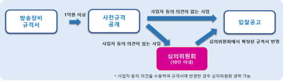 ‘지침’ 개정의 주요내용은 방송장비 규격서 심의 대상을 종전 발주금액 3억원 이상에서 1억원 이상으로 확대한 것이다.