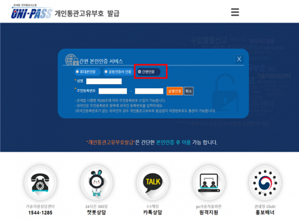 다만, 간편인증으로 개인통관고유부호를 발급받거나 조회하고자 하는 경우에는 미리 스마트폰에 해당 간편인증 앱을 설치해 인증서를 발급받아야 이용가능하다.