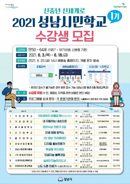 수강하려면 오는 6월 18일까지 성남시 평생학습 포털 ‘배움 숲’을 통해 온라인 신청하면 된다.