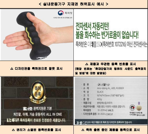 또한, 소비자들의 지식재산권 허위표시에 대한 이해를 돕고자 이번에 점검한 사례 중 지식재산권 표시가 올바르게 된 제품 정보 등을 지식재산권 허위표시 신고센터 누리집을 통해 제공할 예정이다.