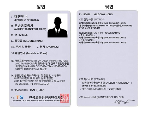 2022년 1월 1일 이후부터 항공종사자 자격증명을 신청하는 경우 기존 국문, 영문 2종 플라스틱 카드에서 국문, 영문 단일 세로형 플라스틱 카드로 변경해 발급한다.