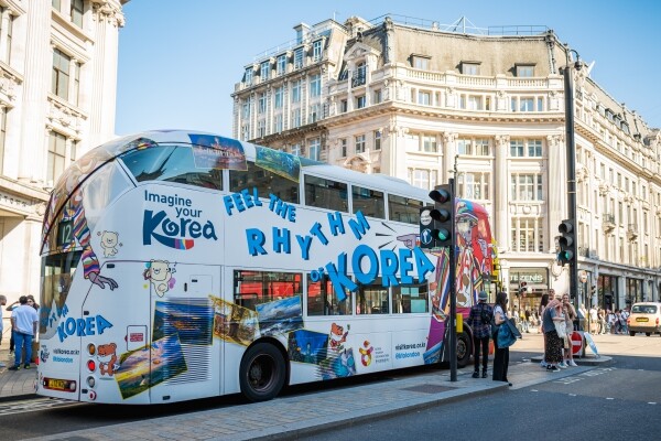 공사 런던지사는 런던의 명물인 2층 버스에 한국관광 해외홍보영상 ‘Feel the Rhythm of Korea’의 일러스트 래핑 광고와 함께 빅토리아·워털루·옥스퍼드서커스 등 시내 주요 역사에도 판소리에 맞춰 현란한 춤사위를 선보이는 댄서들을 볼 수 있는 디지털패널 광고를 선보인다.