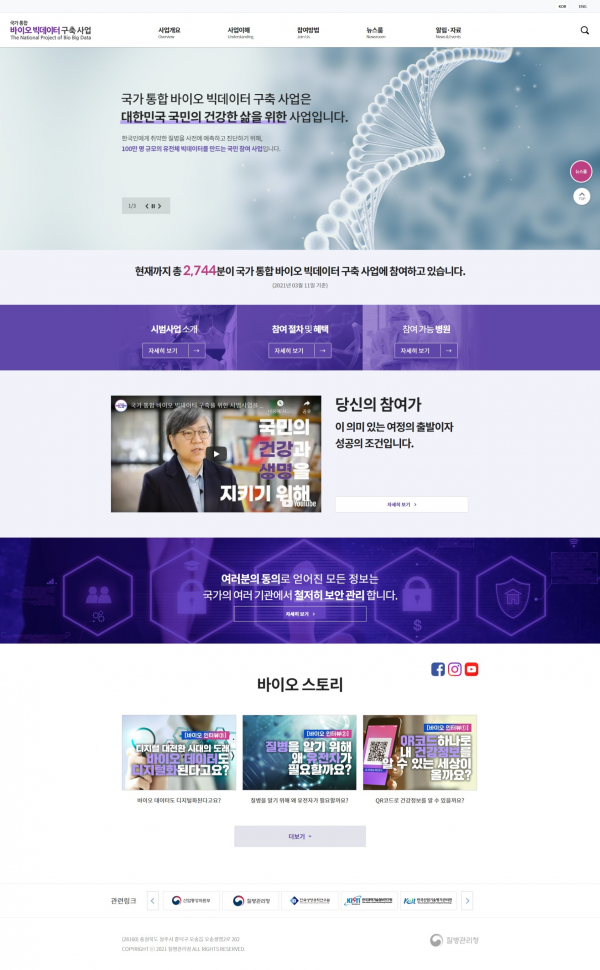 동 시범사업은 100만명 국가 통합 바이오 빅데이터 구축사업에 앞서 보건복지부, 과학기술정보통신부, 산업통상자원부, 질병관리청이 공동 협력해 추진하는 범부처 시범사업이다.
