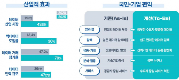 국내 데이터 산업 규모는 연평균 10% 이상 성장하면서 혁신성장을 견인하고 있으며 공공과 민간에서 다양한 데이터 플랫폼을 구축해 관련 산업과 정책수립에 필요한 데이터를 공급하고 있다.