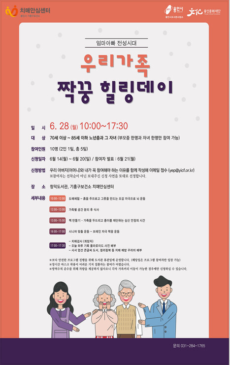 관내 70세 이상 지역 주민은 누구나 참가할 수 있으며 부모와 자녀가 함께 프로그램에 참여하고 싶은 이유를 사연으로 작성해 이메일로 접수하면 총 5팀을 선정할 예정이다.
