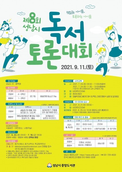 온라인 인터뷰 심사와 본선을 통과하는 4개 팀이 오는 9월 11일 오후 분당구 야탑동 중앙도서관에서 열리는 성남시 독서토론대회 결승을 치른다.