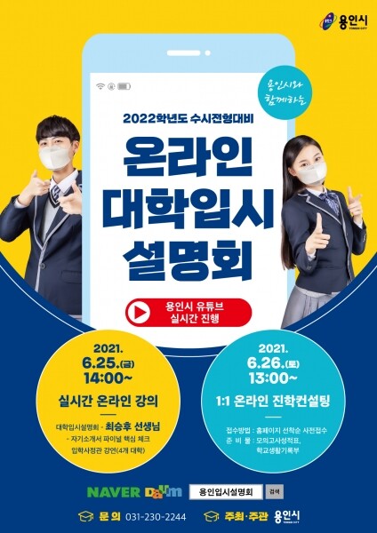 먼저 1·2부로 진행되는 입시설명회는 25일 용인시 공식 유튜브 채널을 통해 생중계한다.