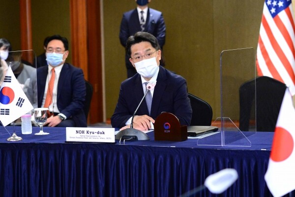 [뉴스앤톡] 노규덕 한반도평화교섭본부장은 21일 성 김 미국 대북특별대표 및 후나코시 다케히로 일본 외무성 아시아·대양주국장과 한미일 북핵 수석대표 협의를 가졌다.