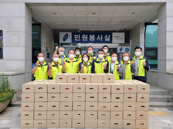 이날 지역사회보장협의체 위원, 새마을 부녀회 회원 등 40명은 대상 가정에 블루베리, 토마토, 고구마, 감자, 참기름 등의 식품이 들어있는 꾸러미를 전달했다.