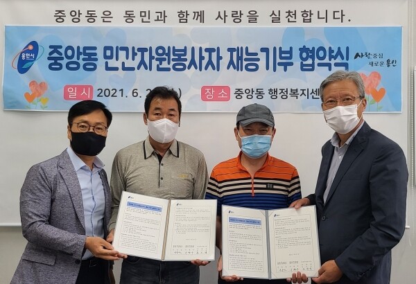 이번 협약은 도배·장판 전문 시공사인 김광성씨와 전기 기술자인 문근욱씨가 재능기부로 어려운 이웃을 돕고 싶다는 의사를 직접 동에 전달해와 진행됐다.
